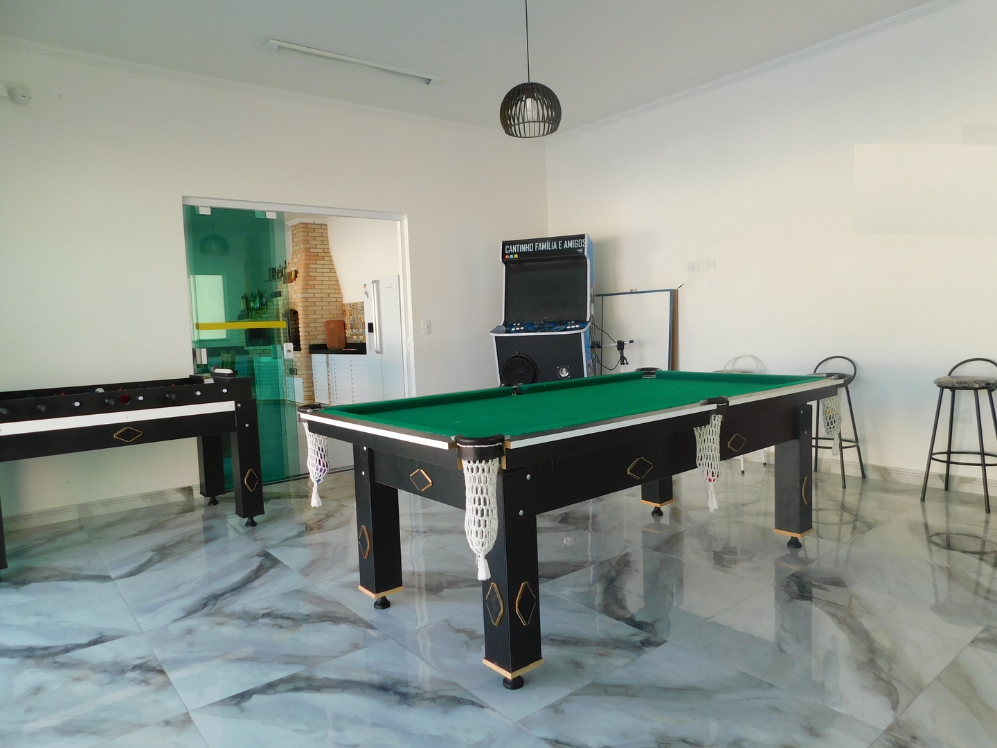 Excelente área gourmet, sala de tv, salão de jogos, jardim e piscina aquecida.