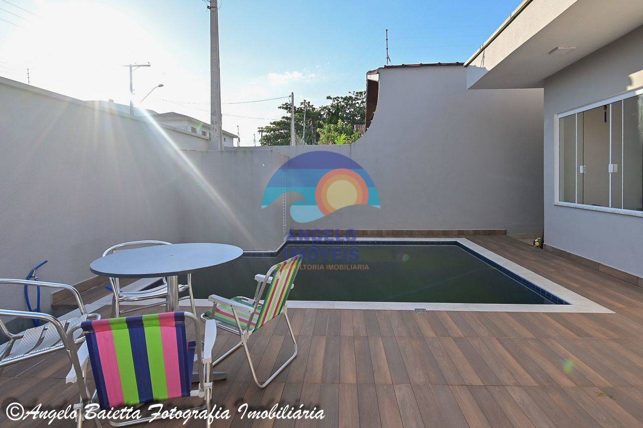 A Angelo Imóveis oferece esta casa em Peruíbe, imóvel novo, com 3 dormitórios, sendo 1 suíte, sala para 2 ambientes, cozinha planejada, banheiro social, área de serviço, espaço gourmet com churrasqueira, piscina de alvenaria, 4 vagas de garagem. Agende sua visita com os corretores da Angelo Imóveis. Nota: valor sujeito á alteração sem aviso prévio.