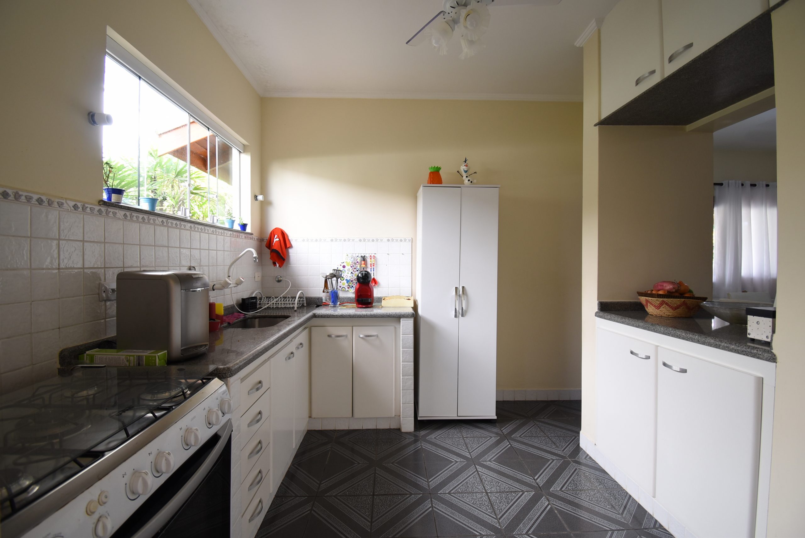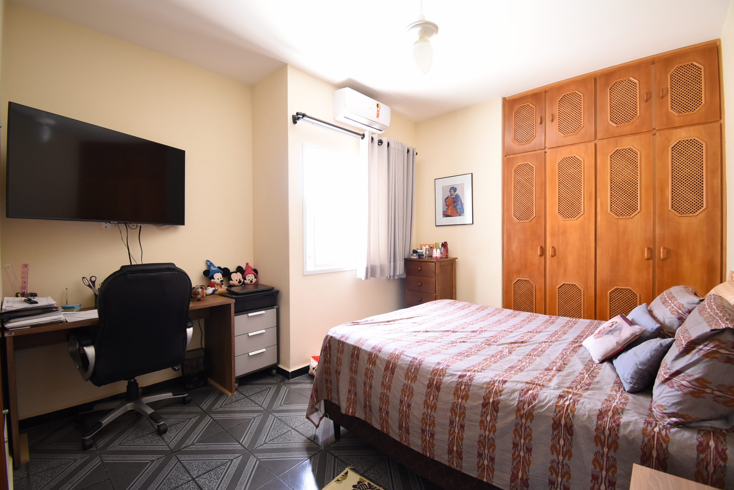Sala de jantar, sala de tv, cozinha integrada, despensa, lavanderia, banheiro social, 3 quartos sendo 2 suítes com ar condicionado e armários embutidos.