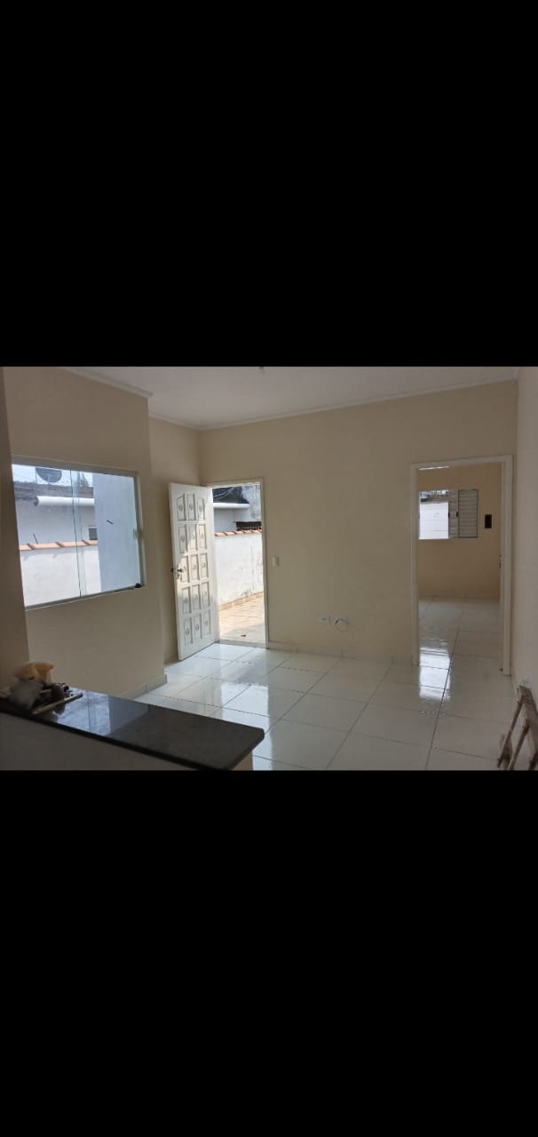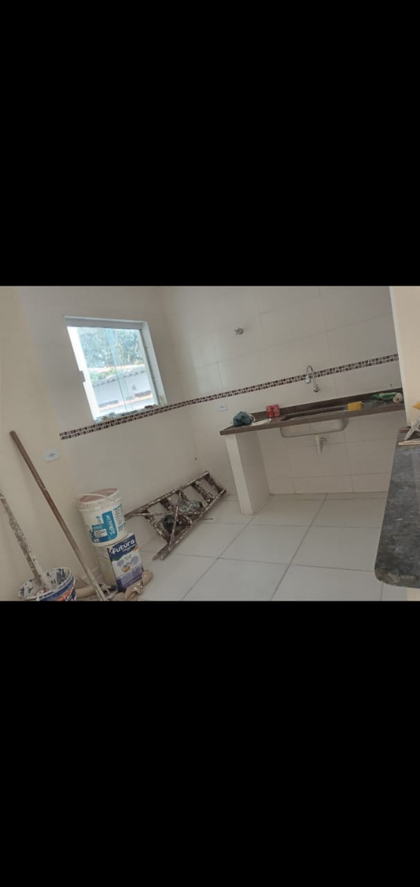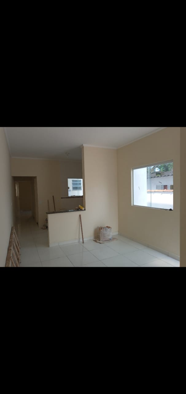 Casa nova com 2 dormitórios, sala cozinha americana, wc social, garagem para 2 autos descoberta área de terreno 125 m2, área construída 60m2