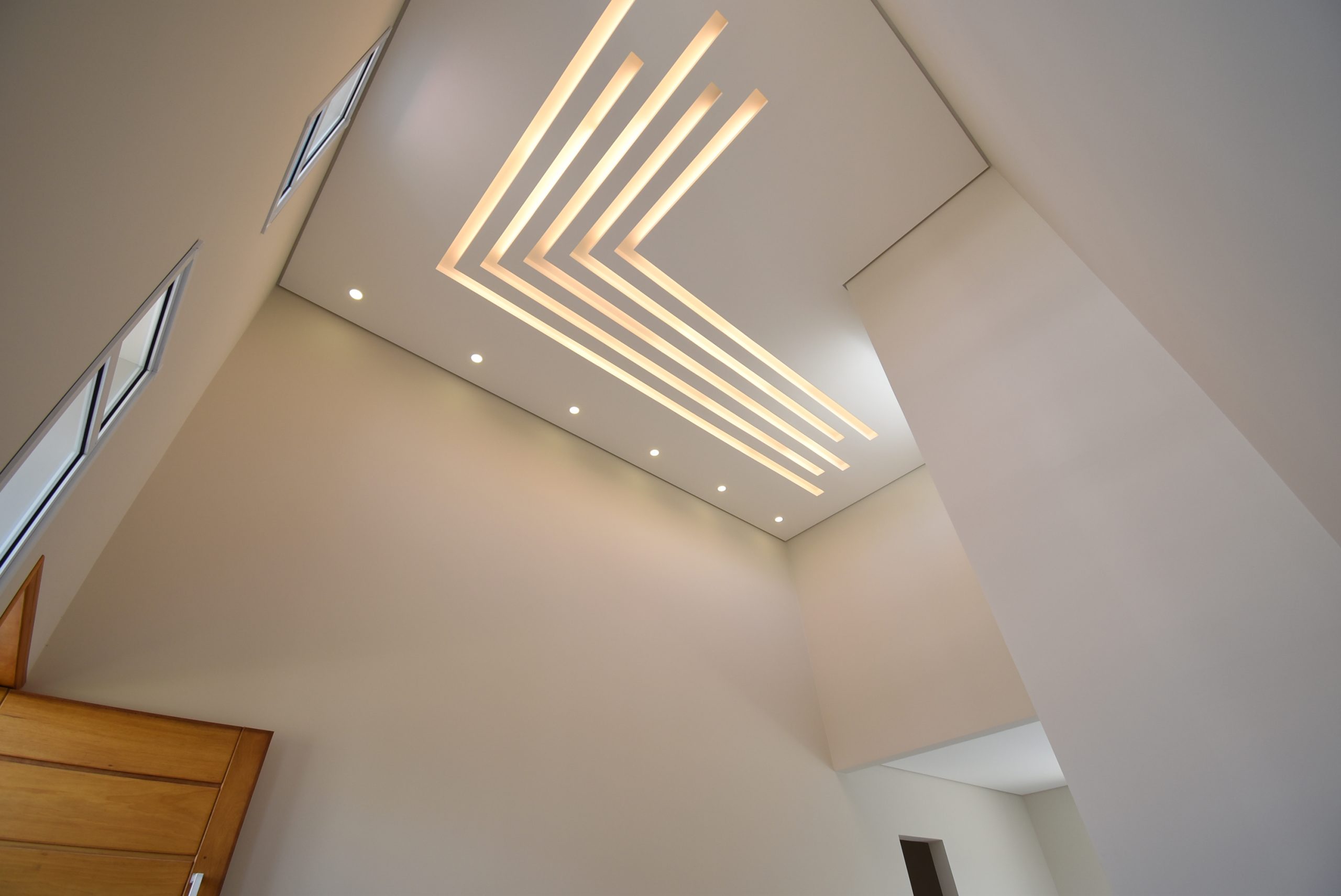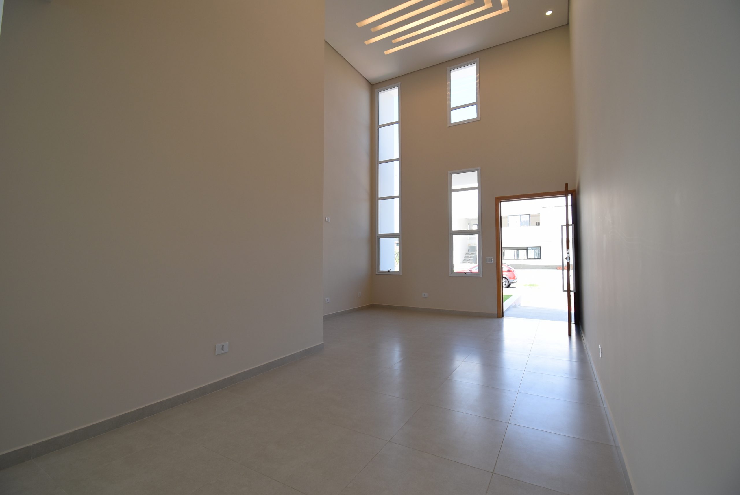 Sala 2 ambientes com pé direito duplo;