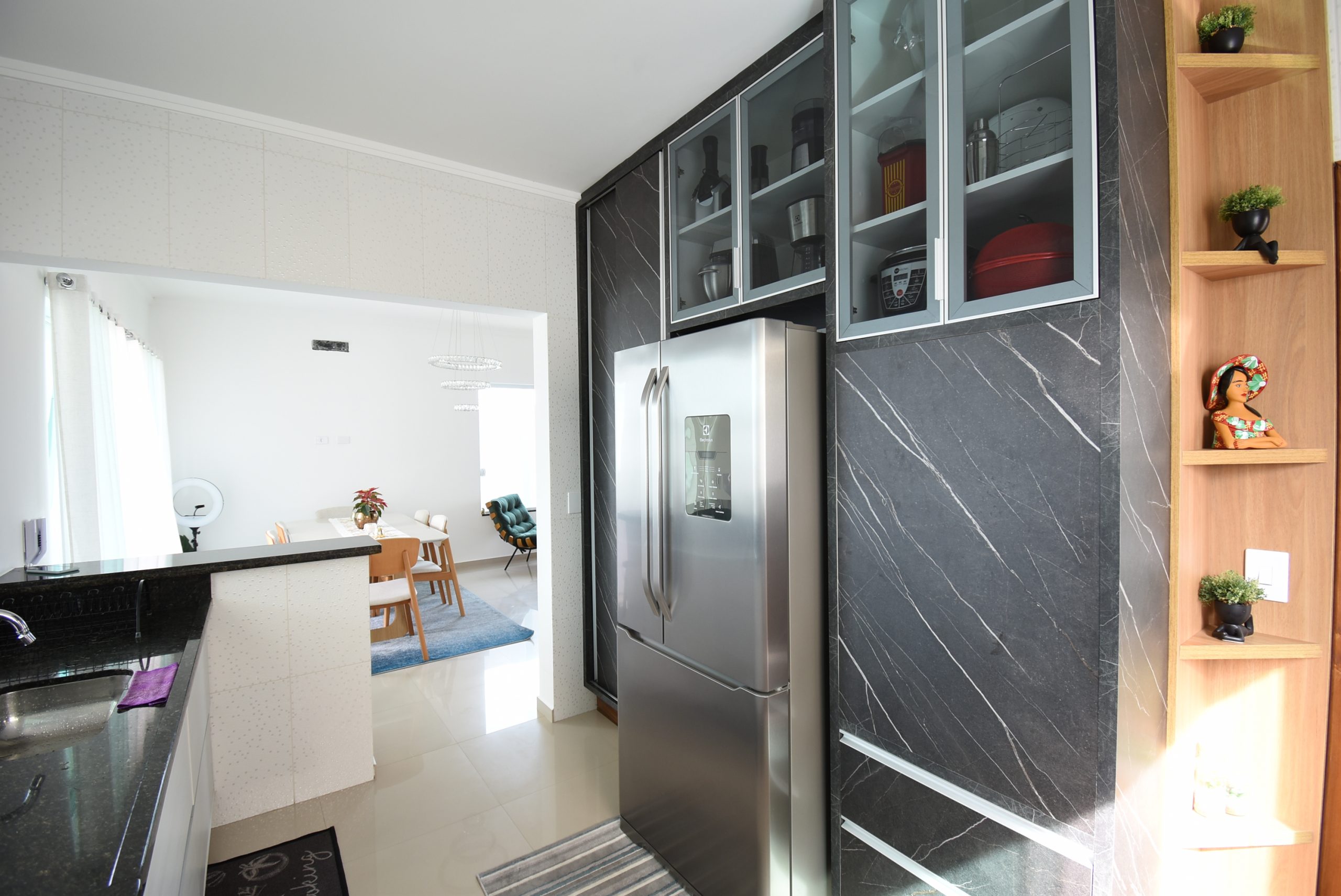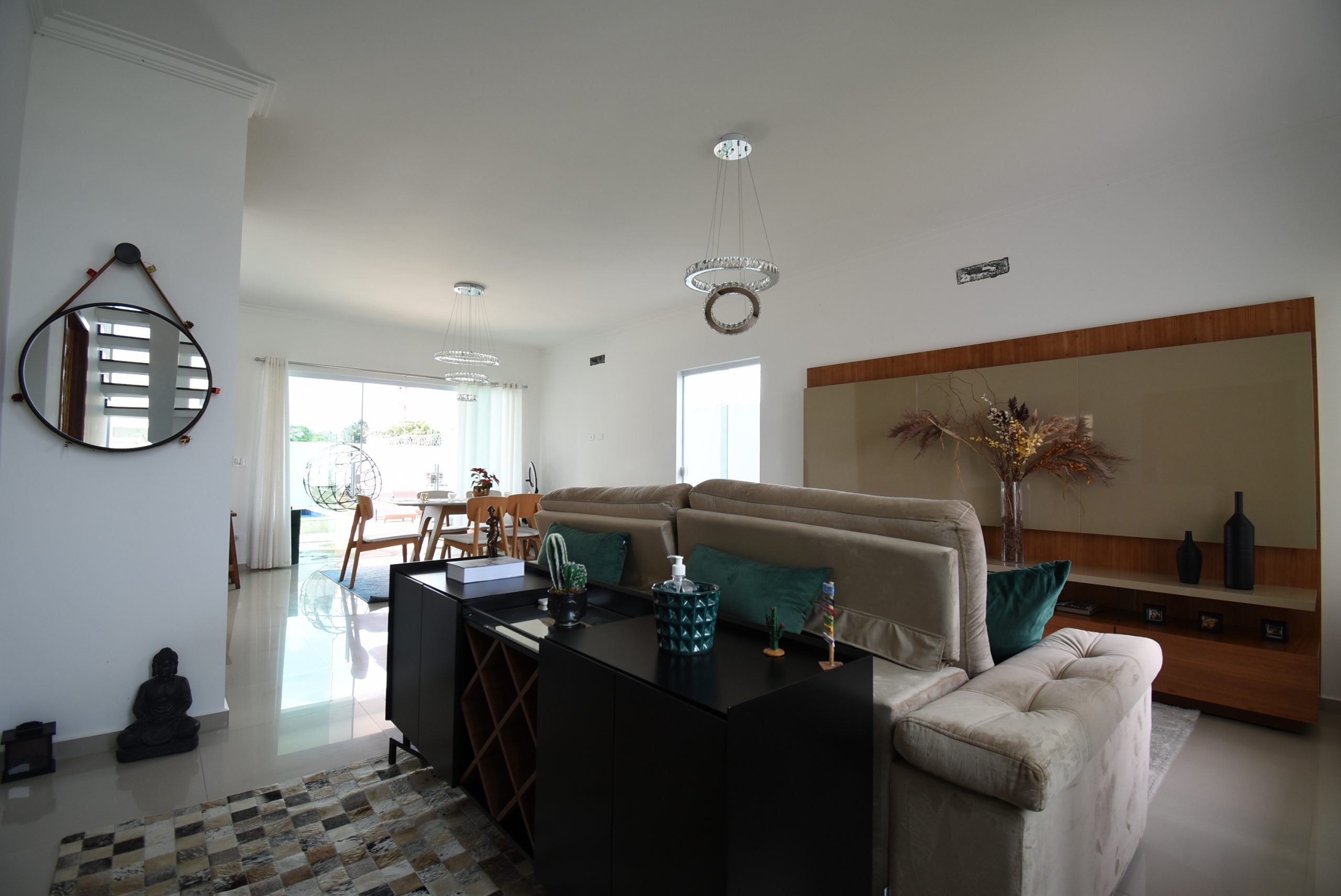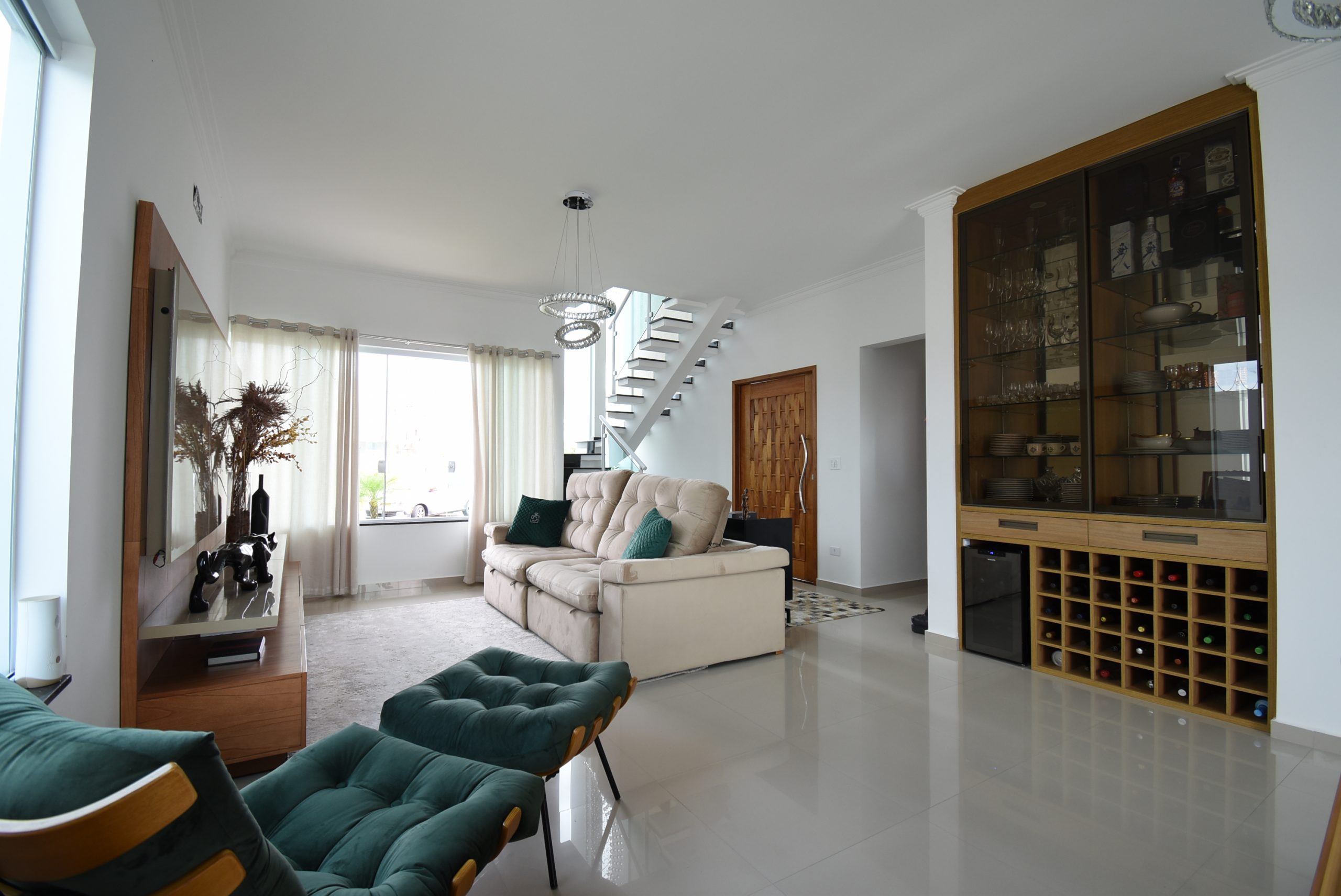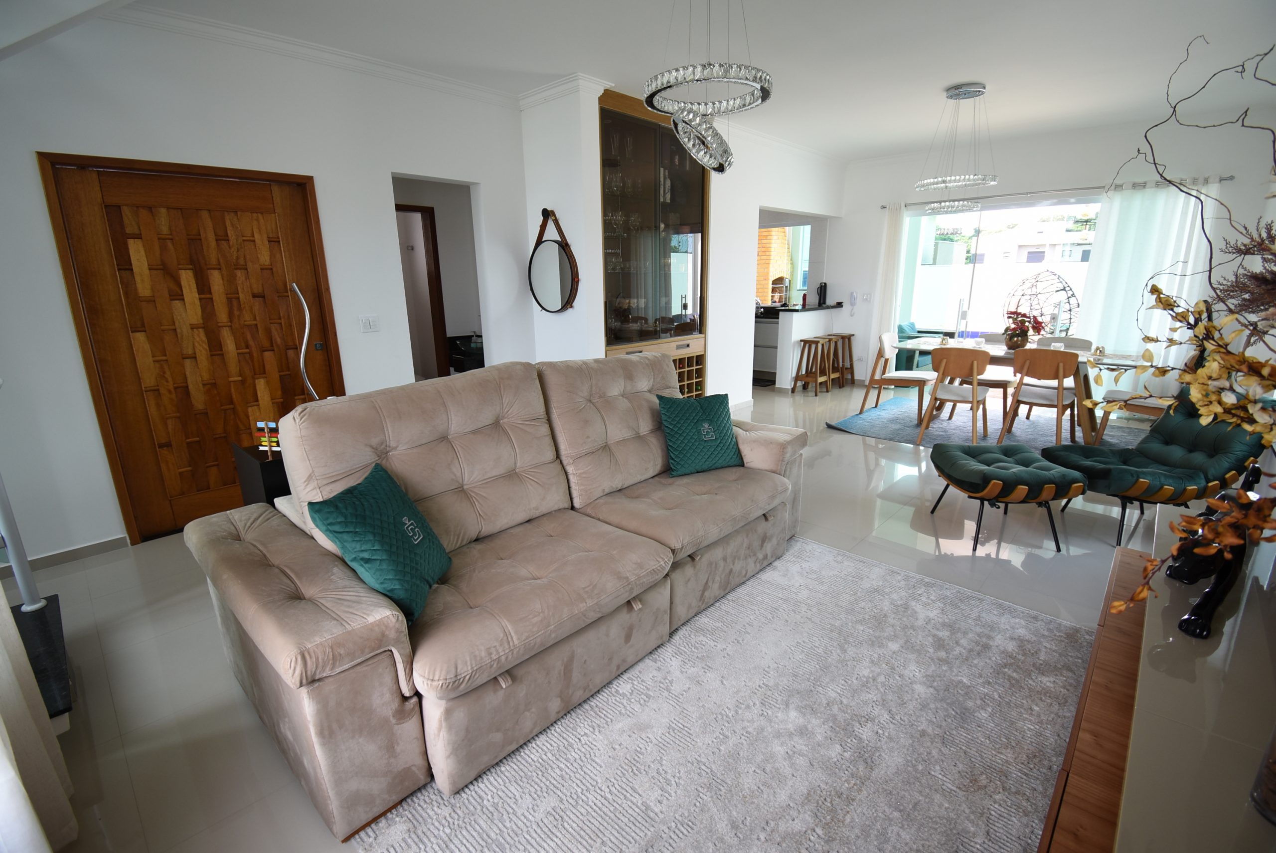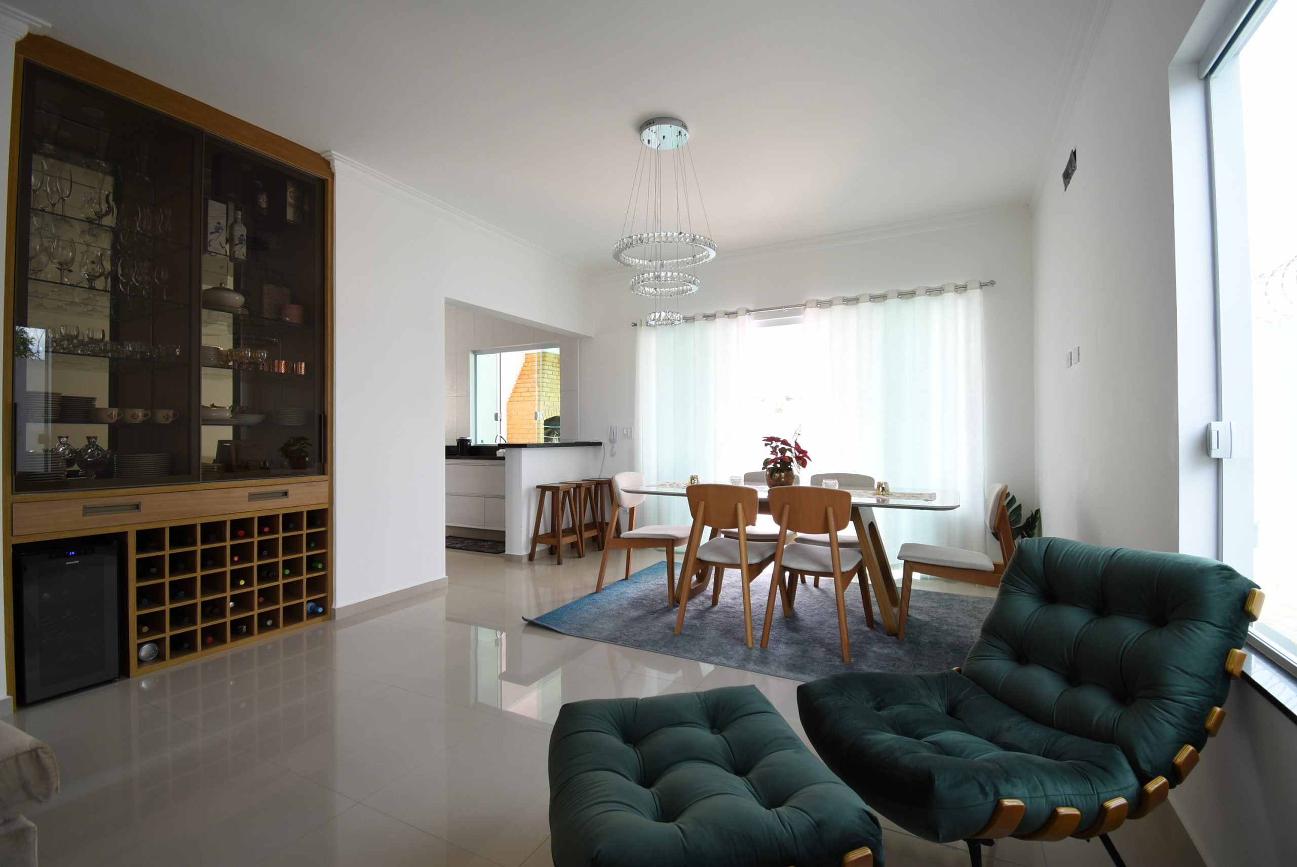 – sala de estar, sala de jantar, cozinha integrada, lavanderia e lavabo;
