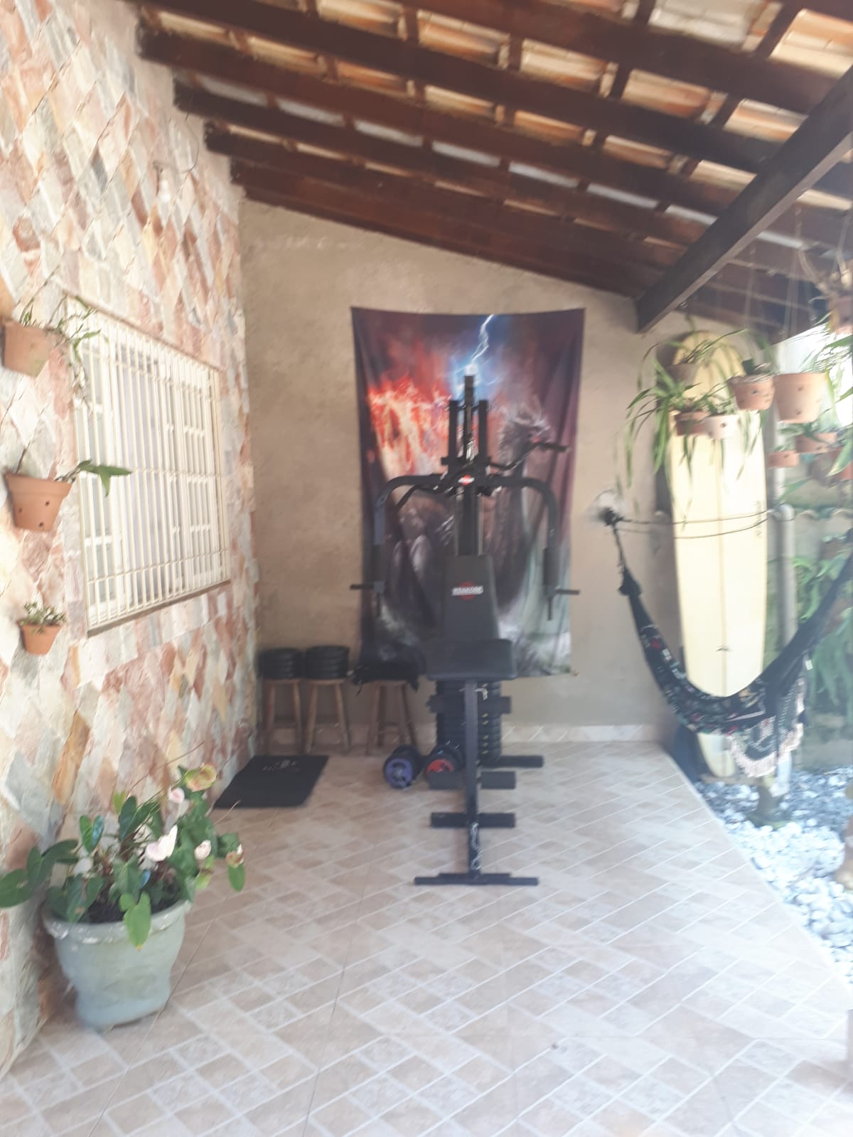 Ótima casa térrea com garagem para 3 veículos, sala ampla dois ambientes, cozinha americana, dois dormitórios sendo uma suíte, banheiro social, lavanderia, área gourmet com churrasqueira, fogão e forno a lenha, suíte em anexo com closet, quintal com muita área verde, pomar, tanque criação de peixes, água da Cachoeira, espaço para piscina, academia.