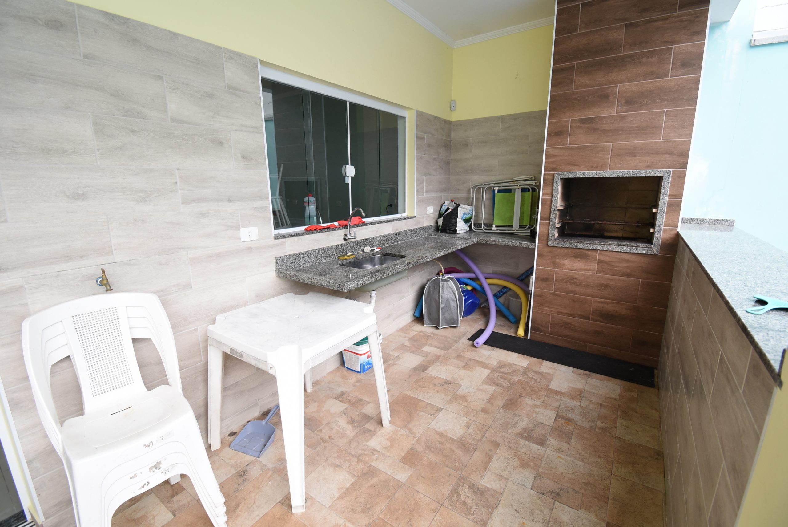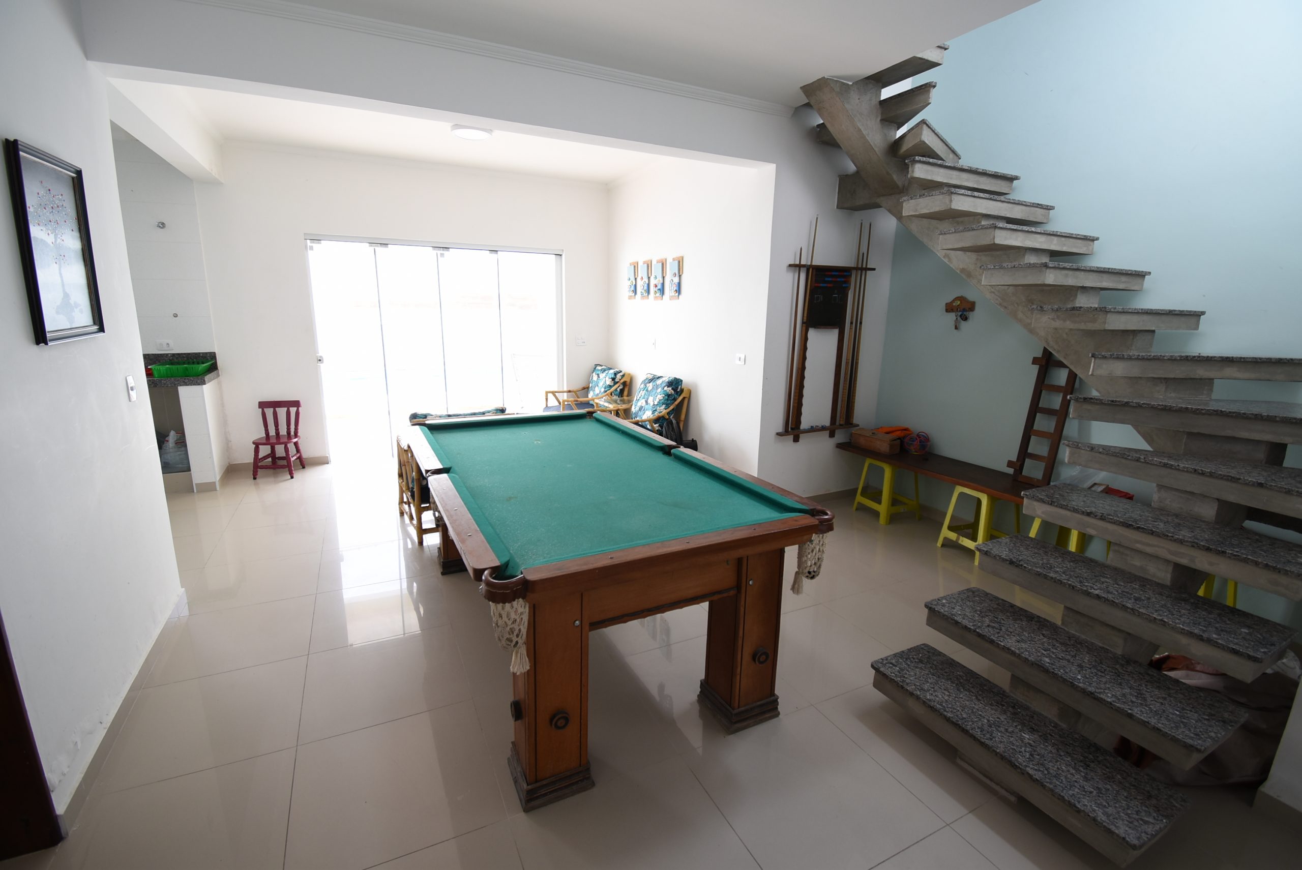 Imóvel de ótima qualidade, com 5 vagas de garagem, piscina com cascata, área de churrasco, banheiro social externo, sala de tv, sala de jantar, cozinha integrada, 1 quarto no piso térreo e banheiro social interno.