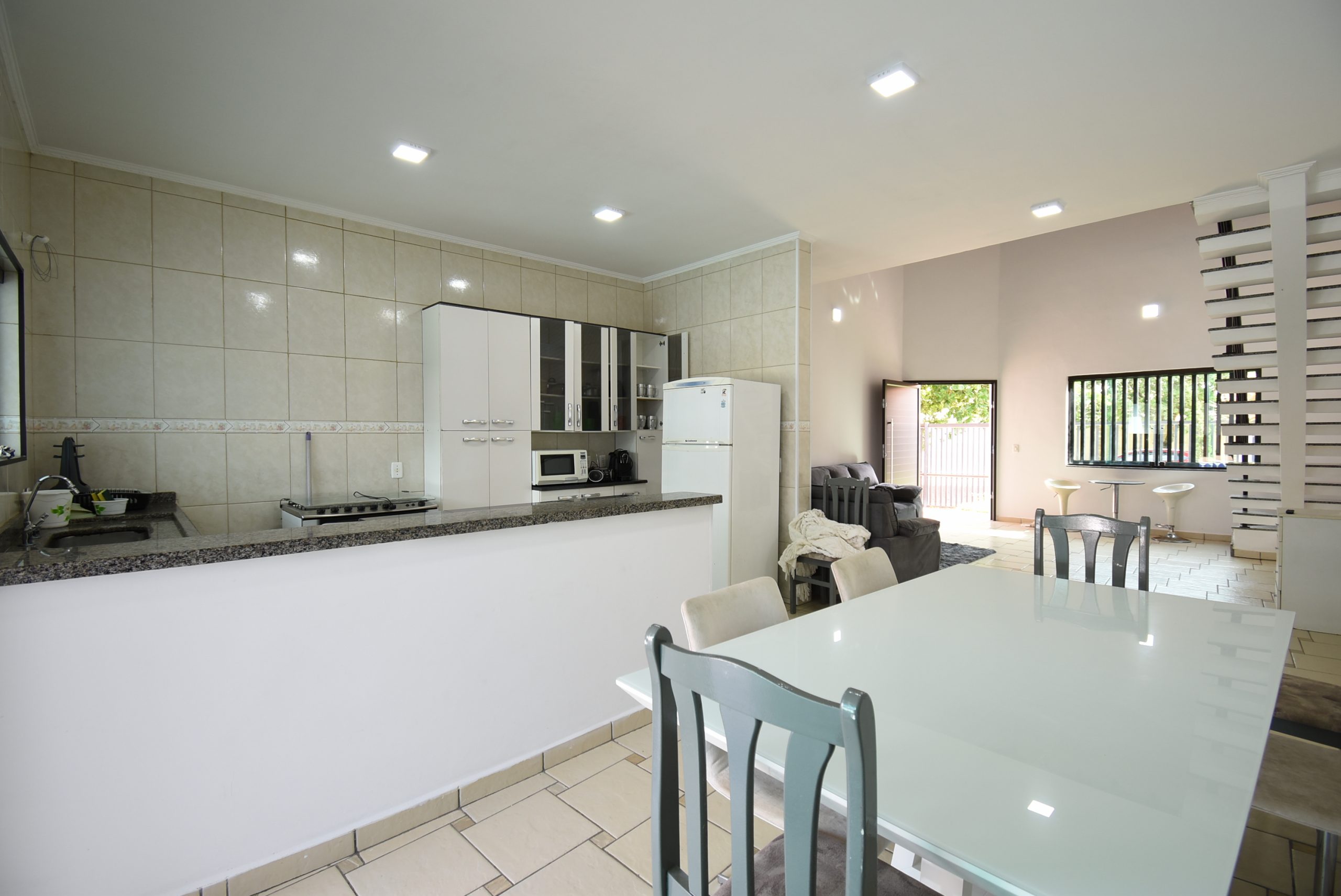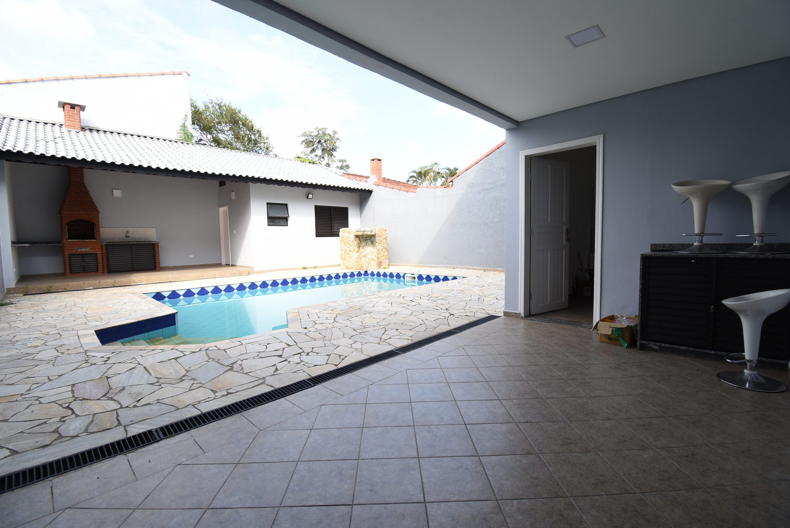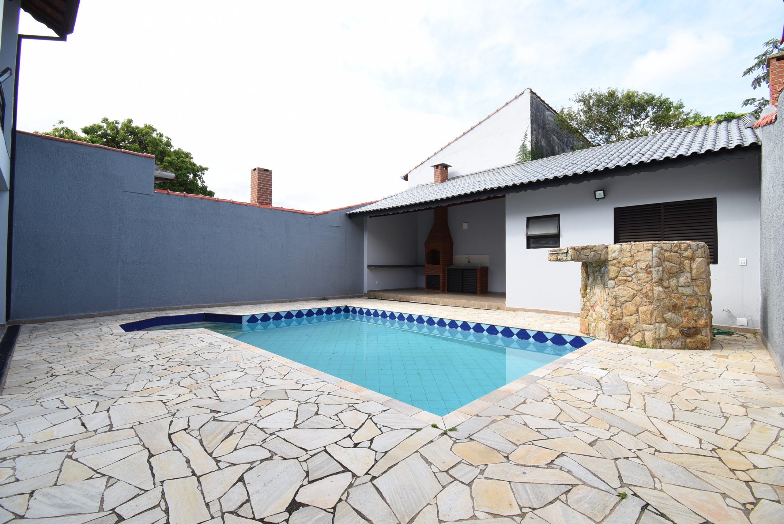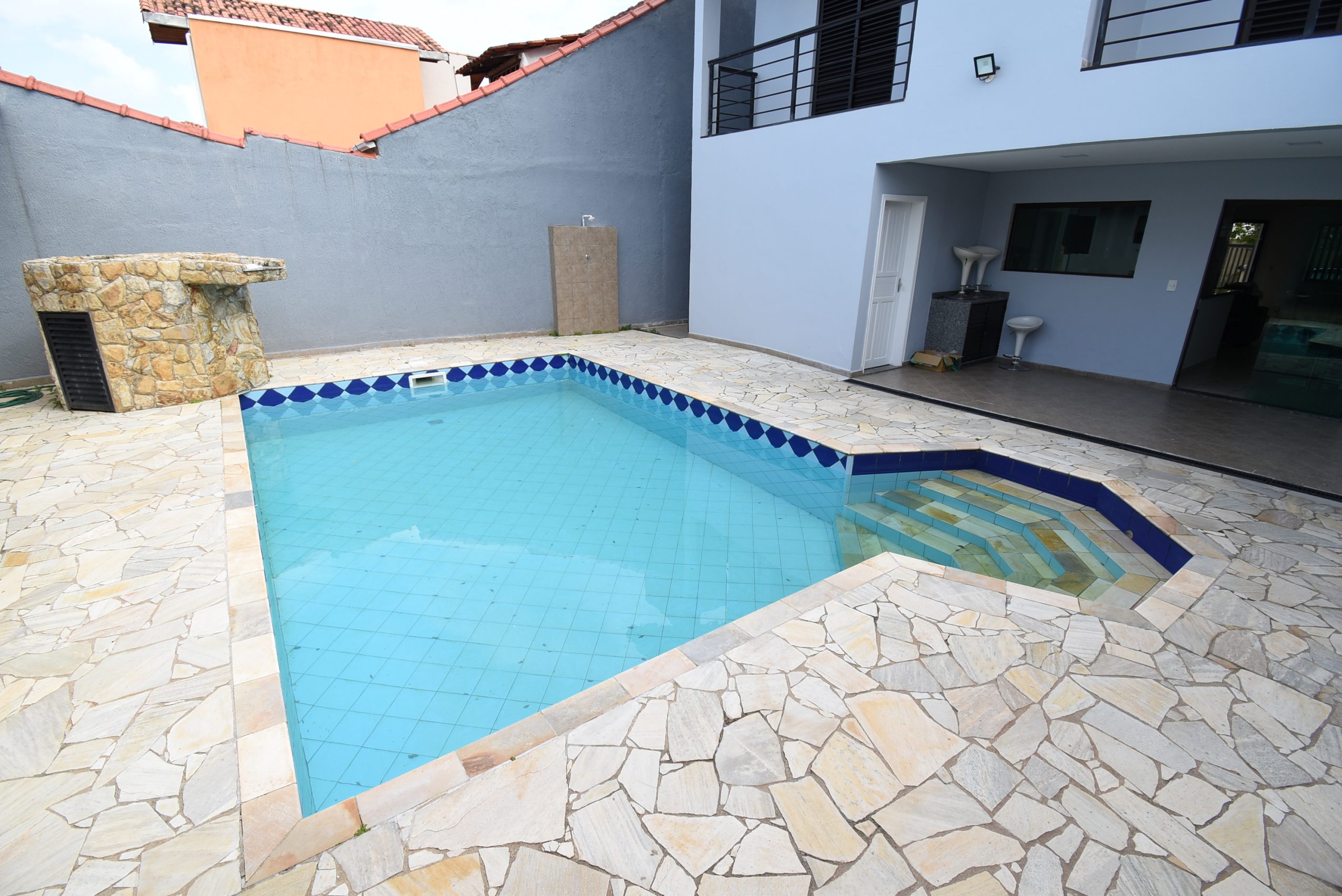 jardim, 4 vagas de garagem, piscina de alvenaria com cascata, lavanderia, edícula com área de churrasco e 1 suíte.